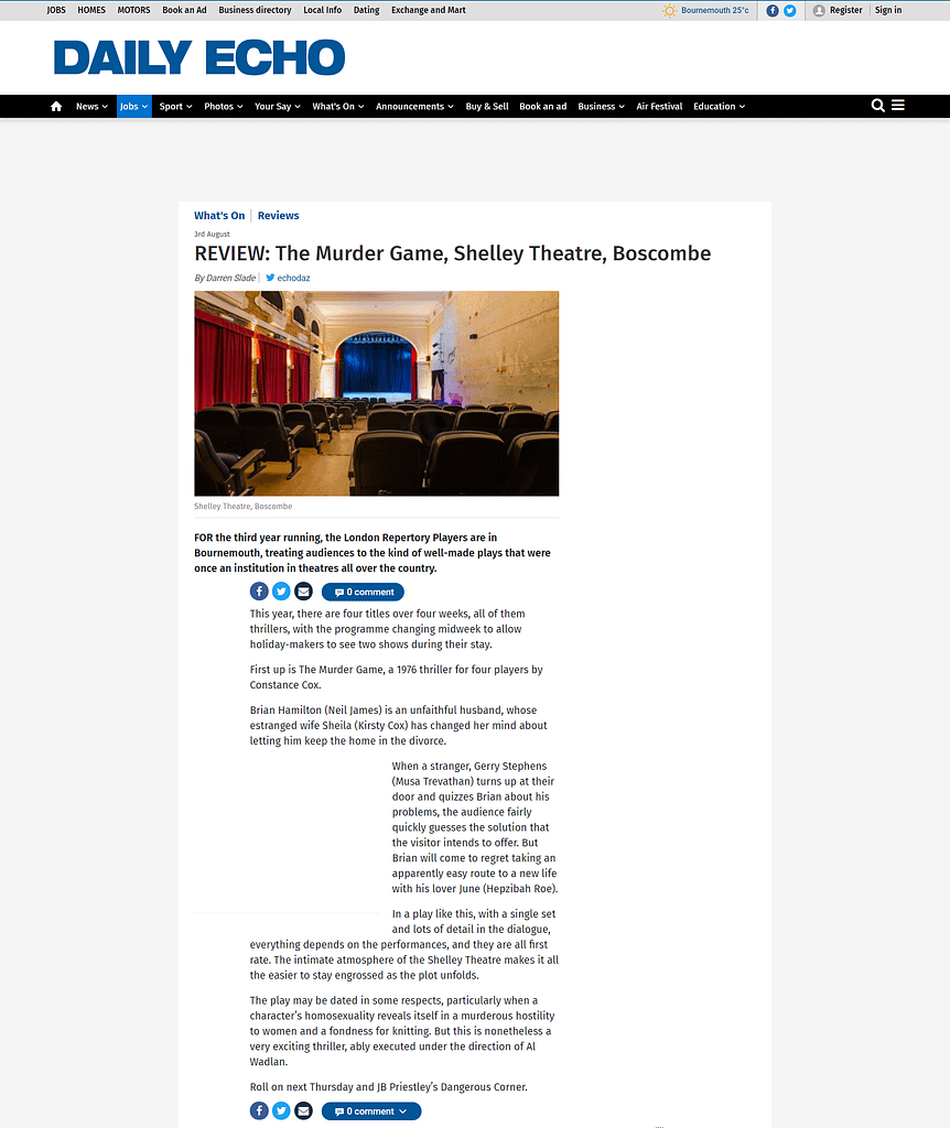 Featuring an explosive opening with a loud gunshot and a piercing scream – echoed in the play’s symmetrical ending – this is ingenious and enjoyable work.